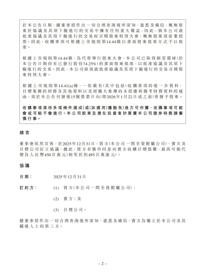 4、增厚营收利润,提升本集团整体财务表现:目标公司财务指标持续稳健,于完成后,其将提升本集团营收规模及获利表现,为本集团和股东创造持续的长期价值。