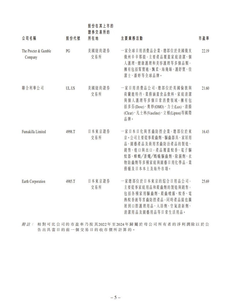 3、实现产品品类领先,巩固本集团市场地位:通过收购事项,可快速提升家用杀虫剂、家居清洁等品类市场份额,巩固本集团产业龙头地位。