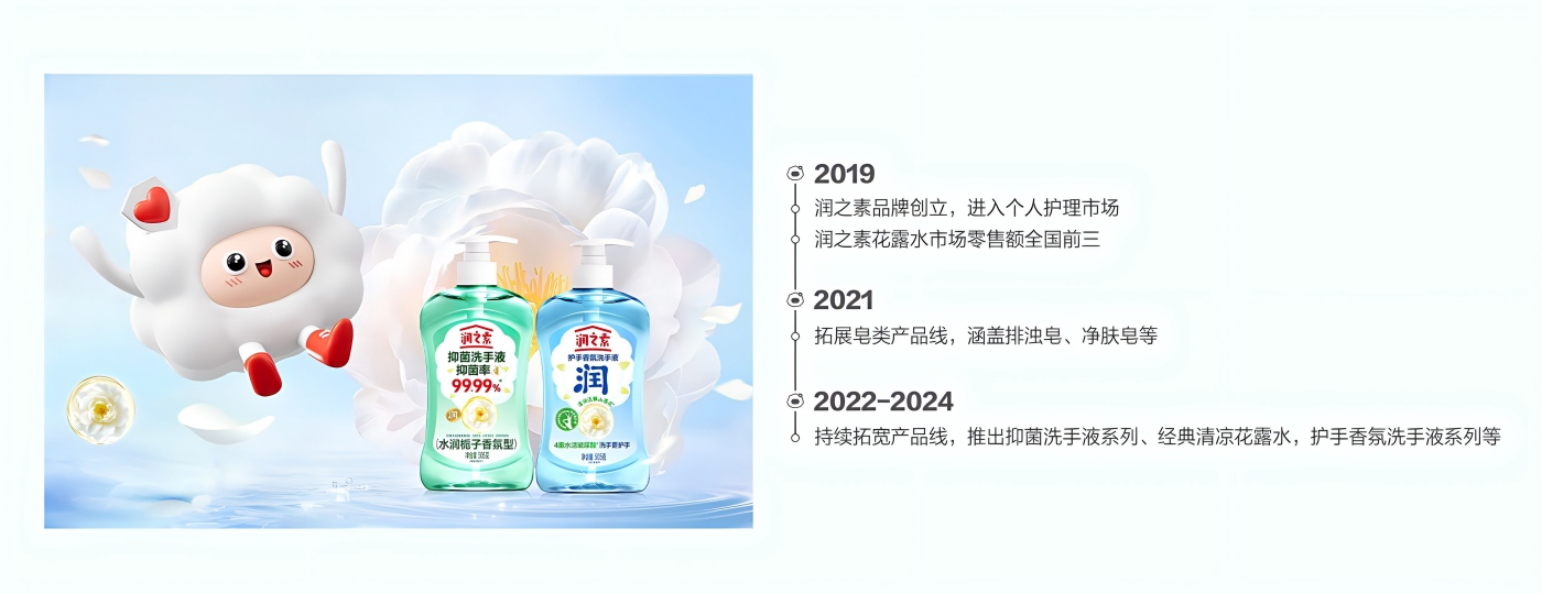 主营产品包括抑菌洗手液、清凉花露水、净肤皂等。