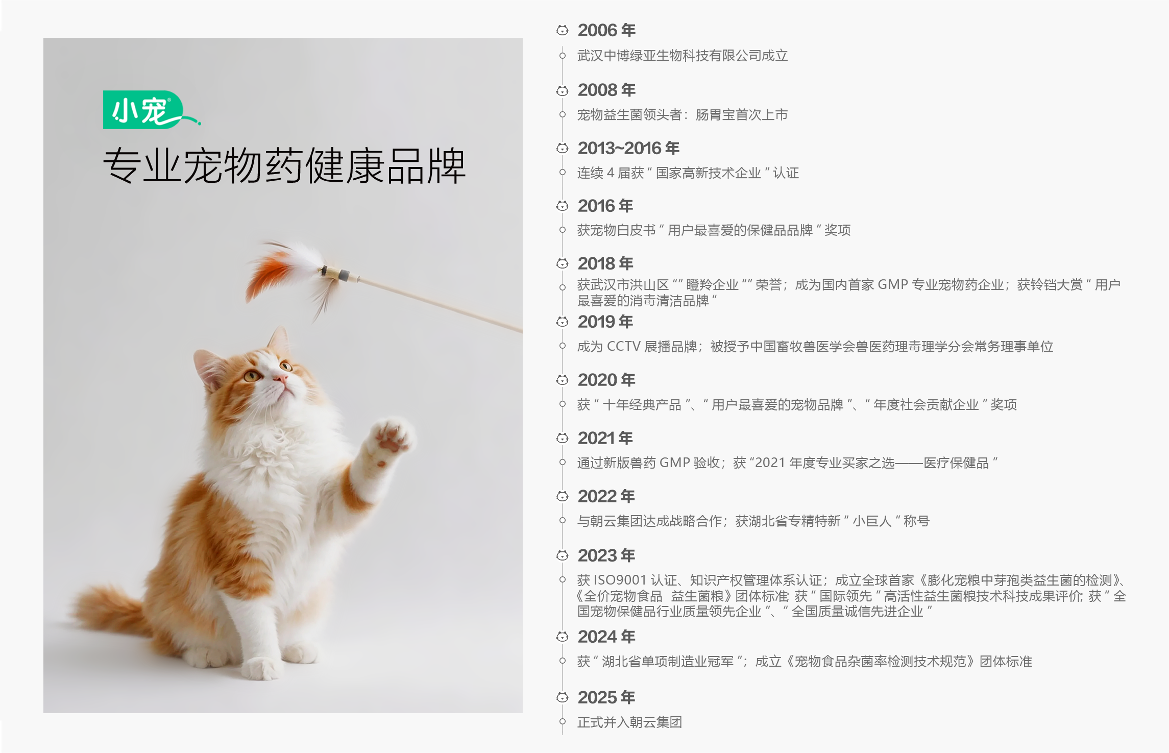 小宠品牌,专注宠物健康 20年的宠物保健品与药品品牌,同时具备研发、生产、营销能力。品牌的核心研发团队与母工厂获得 31 项国家专利,与 25 个兽药批文。拥有专业的兽医服务团队,为宠物健康实时护航。
